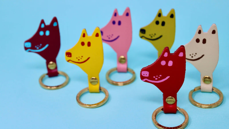 A fun little pup for your pocket. Designed to make an easy and cute gift for friends all year round. These colourful dogs look great when displayed upright on a shelf and even better when combined with the cat head key fobs. Made using the traditional technique of hot foil embossing which ensures a handmade and unique product every time. British made. Our key rings are made with fun and functionality in mind and make the perfect gift for new home owners. Embossed and assembled in Scotland. Height excluding ring 7.5cm