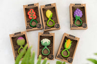 Oli & Carol's Cauliflower Rattle Toy is the most eco-friendly rattle on the market! Its exterior is made of 100% natural rubber, and inside are upcycled cherry seeds that turn this teether into a rattle. 2 in 1!