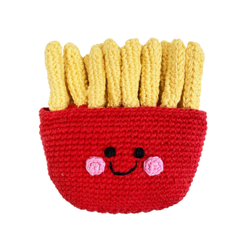 • 100% organic cotton with 100% polyester fill. This toy has a rattle.