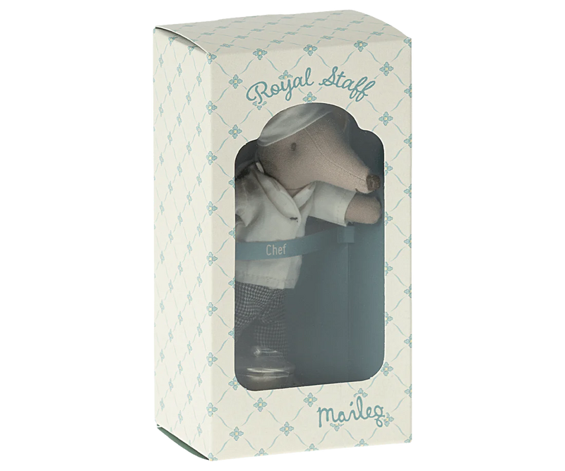 Maileg’s lovely playset features a chef mouse, soup pot, and spoon. Make dinner time a play with this sweet set. Match it up with Maileg's kitchen collection and miniature food for the story to continue.