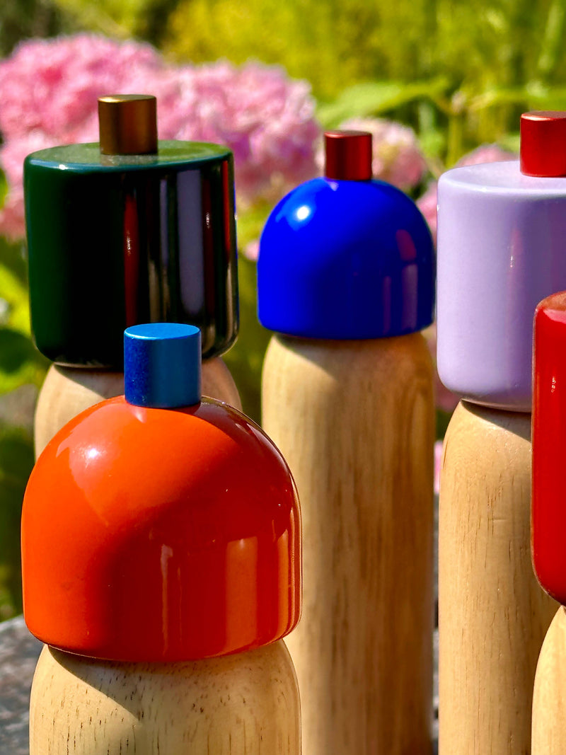Maegen Tableware Collection Salt and Pepper Grinders (sold separately) Add a vibrant touch to your table and elevate your dining experience with the Maegen Tableware Collection Salt and Pepper Grinders. Crafted from sustainable certified rubberwood, these elegant grinders combine sustainability with style. Our small grinder stands at 19cm and our large stands at 21.5cm in height, they are the perfect size for easy handling while making a statement on your table. The ceramic mechanisms ensure a smooth, consistent grind every time, allowing you to season your meals to perfection. Bring both functionality and a pop of color to your kitchen with these beautifully designed grinders.