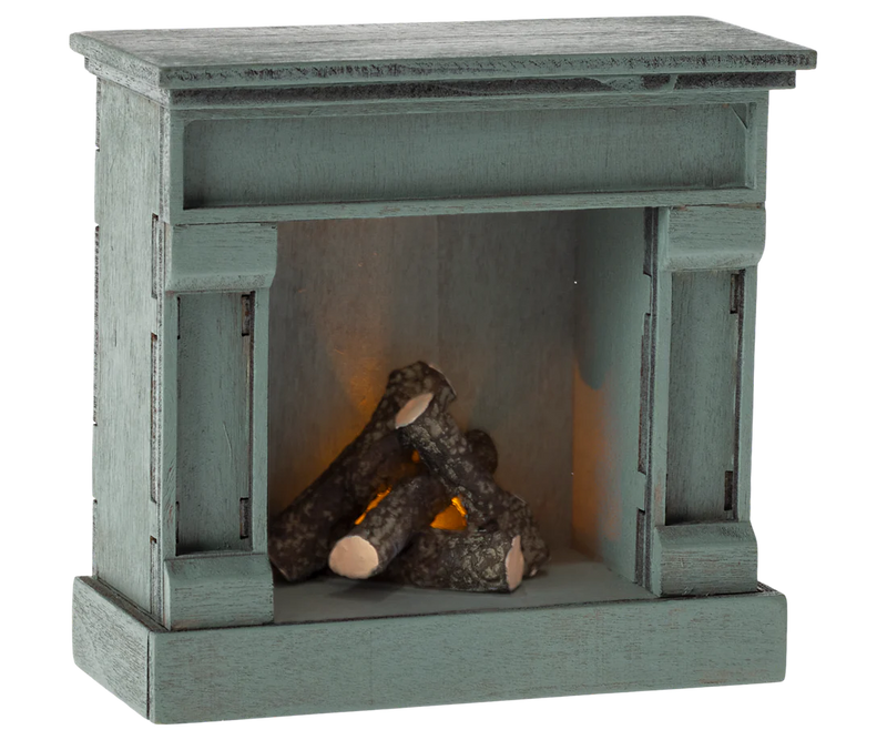 Use this wooden fireplace to warm your miniature home! It has an authentic look and a vintage finish. Remember to turn off when your friends go to bed. The product comes without a battery. You can add a coin cell battery (CR2032).