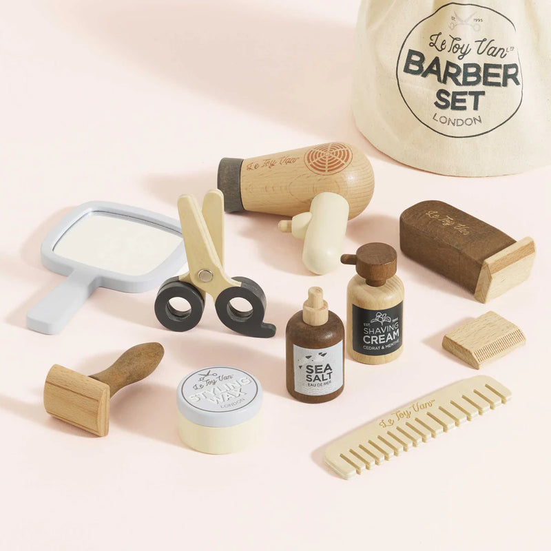 Amazingly, the entire set all fits in the storage cotton drawstring bag provided.  Our wooden Hairdresser & Barber Set is a true treasure for little ones!