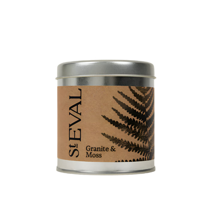 Mist over moss-covered crags, a good scrunch of cedar and an elegant murmuration of starlings breaking  the stillness of a solitary moorland walk. The Granite & Moss Tin Candle evokes the untamed beauty of the moors, blending crisp, wild air with the quiet mystery of the woodland.
