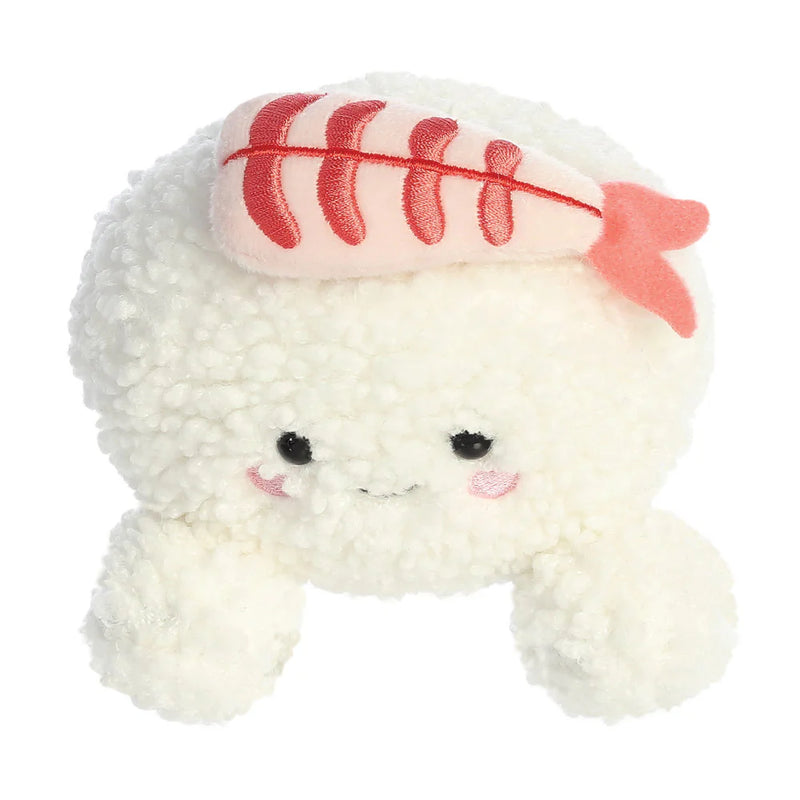 Suitable from Birth. Palm Pals Ebi Shrimp Sushi soft toy measures 13cm. These gorgeous and irresistibly cute toys make great gifts for any occasion whether it is for a birthday or as a general gift, everyone will fall in love with this adorable smiling rice ball soft toy. This is a hugely collectable range.