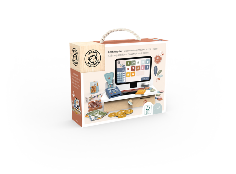 Speedy Monkey’s wooden cash register allows your little one to step into a world of pretend shopping and early learning. This interactive toy is designed to spark imagination and teach real-life skills.