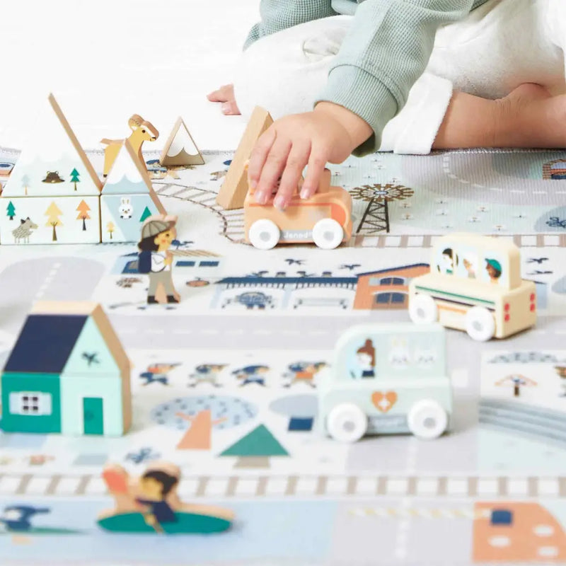 Ladies and gentlemen, welcome aboard this station-bound bus! Create countless stories with this bus. Thanks to its shape, the bus can easily be grasped by little ones. Toy made from FSC™ wood for children aged 12 months and up.
