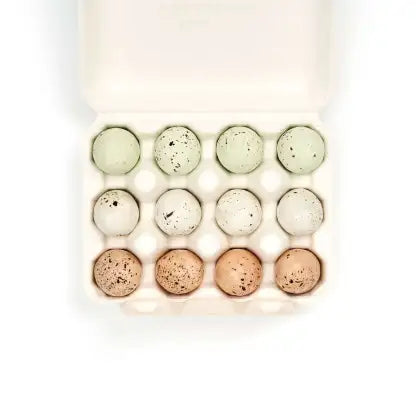 12 Chocolate Eggs filled with a fine hazelnut praline or salted caramel.