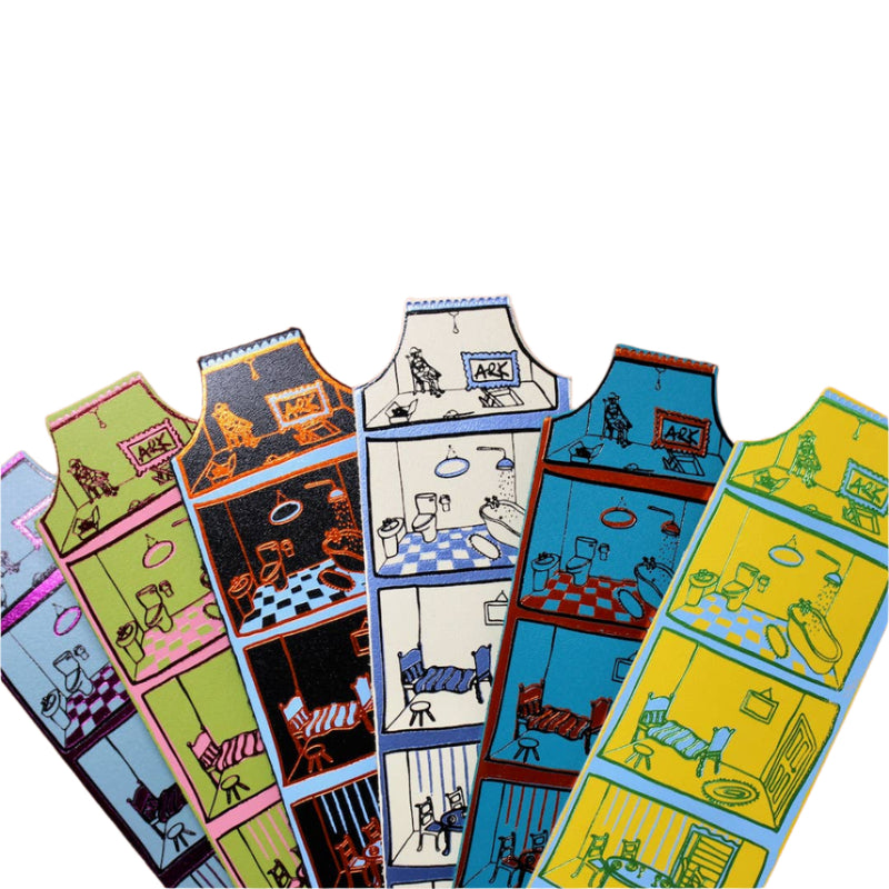 100% Genuine Leather Bookmark | Handmade in the United Kingdom New in! Discover the charm of our dolls house bookmark with a full narrative illustration on both sides. Peek into the terrace house and immerse yourself in the story! These houses make the perfect stocking filler this Christmas. Each piece is carefully crafted to create a striking and multifaceted look that is sure to make a statement. We have combined both shiny and matte foil to each design, creating depth and high impact. Genuine leather double sided bookmark. The leather is sourced from a family run Scottish tannery using skins sourced as a by product from the meat and dairy industry. Embossed and assembled in England. Designed and dispatched from our Cambridge studio. All of our products are plastic free and packaged in recyclable paper Height 20cm