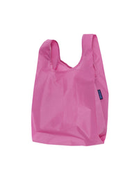 To minimise waste and increase durability, Baggu reusable bags are assembled from one continuous piece of recycled nylon material, with the neck of the bag used to construct the carrying pouch.