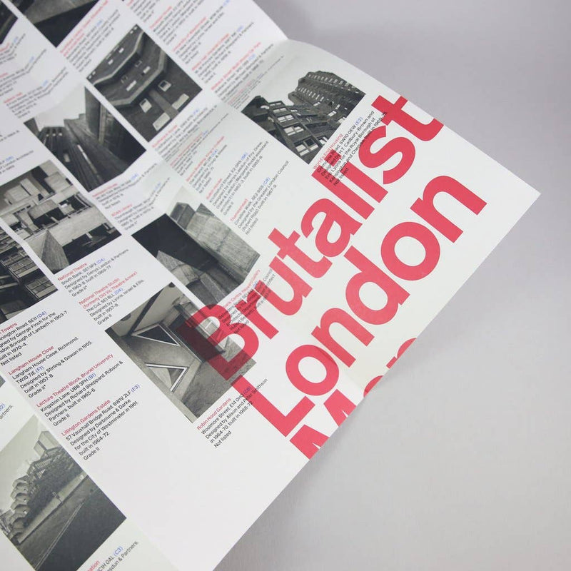 This two-sided folding map features over fifty leading examples of Brutalist architecture in London, from the Alexandra Road Estate to World's End Housing. Celebrated Brutalist buildings such as the Trellick Tower, the Barbican and the National Theatre are included along with lesser known, yet equally influential buildings.