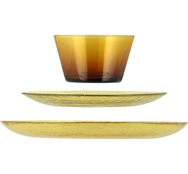 Made from hand blown, recycled glass, they are rich with colour. Every piece is hand made by skilled artisans and no two are exactly alike. Hundreds of tiny air bubbles in the glass create a light, bubbly effect and add to the uniqueness of this charming range designed for every-day dining. Packed in our simple crisp, Kraft card boxes with 1 colour print so they are easily recyclable.
