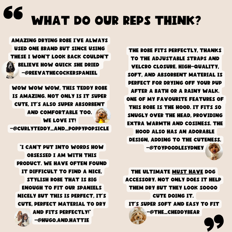 This Teddy Drying Robe is the cutest way to dry off after a good dip! Keep your pup looking adorable & dry at the same time with this stylish and cosy teddy dog towel robe. Simply pop your pooch in our robe, fasten around the belly and neck with the super simple velcro patches. Pawfect for relaxing in post walkies... say goodbye to wet dog smell and endless rubbing down!
