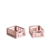 HAY Colour Crate is a series of colourful storage boxes with a distinctive, perforated design. Made from 100% recycled post-consumer plastic waste in a variety of different colours and sizes, the crates can be stacked on top of one another in different size combinations.