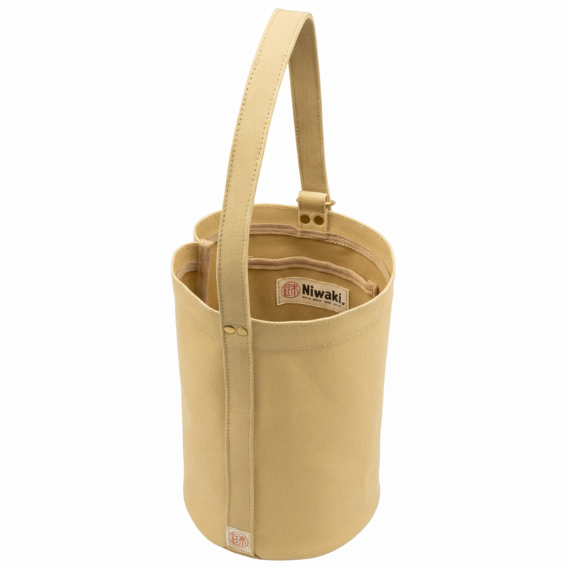 All the style and craftsmanship of Niwaki original Kantan Bag, now in a smaller but equally versatile size. Made from hard-wearing, water-resistant canvas, with a tough PVC-lined bottom. Fill it with a few tools for the garden or take it out on the town with your everyday essentials safely by your side. Adjust the single strap to wear it over your shoulder, or carry it in hand bucket bag-style. Spot wash with a damp cloth only.