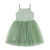 A soft cotton body with a simple tulle skirt in a soft forest green colour.