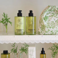 Exquisitely packaged in a green glass bottle with pump dispenser.