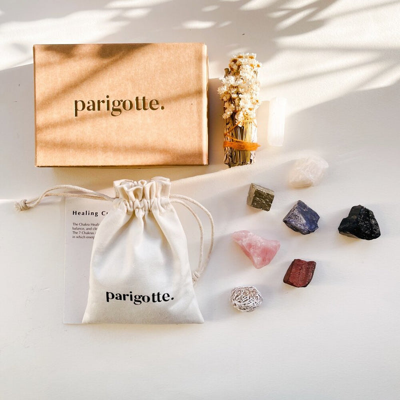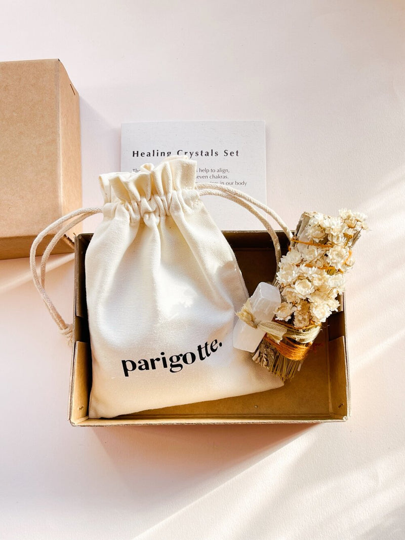 This beautiful set of 7 Raw chakra crystals comes in a lovely gift box, a white sage smudge stick, an information leaflet about the crystals and chakras, and a natural cotton pouch to keep them protected or carry them always with you.