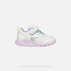 Lightweight breathable low-cut sneaker for babies with a modern running-shoe vibe. Cast in white with multicoloured details, it will stand apart for its sporty dynamic aesthetic and rests on a cushioning sole that is bound to deliver outstanding comfort. Sprintye has been crafted from mesh and a leather-effect material, and fastens with riptapes and handy elasticated lacing, making it the perfect way to round off a whole series of casual outfits.
