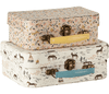 This is a 2 piece set. The suitases are covered with beautiful printed fabrics.