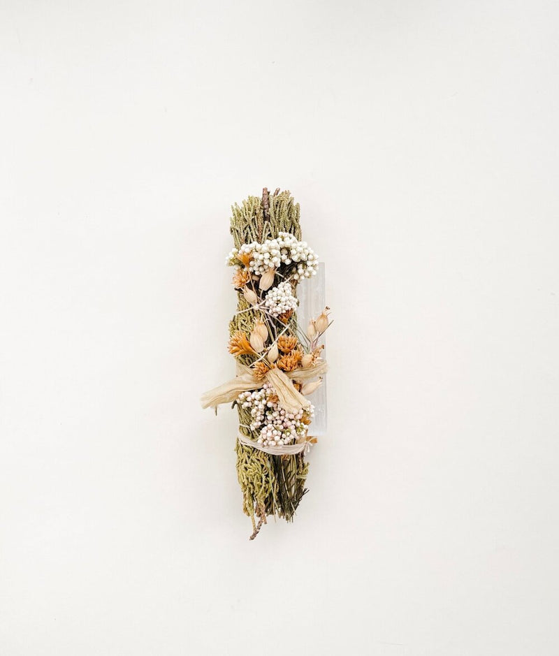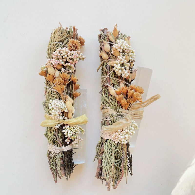 A large Juniper smudge with dried flowers and selenite, hand-bound with love.