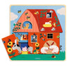 The Chez Moo 3-level puzzle is a 12-piece wooden puzzle from Djeco.