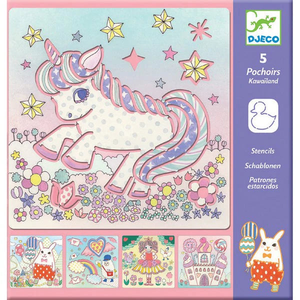 The Kawai_land Stencil set includes a Candy Castle, Easter Bunny, Cartoon Postman Sheep, Princess and Unicorn.