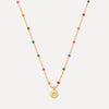 CZ Pendant Rainbow Beaded Necklace - Gold