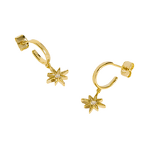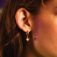 Our North Star CZ Charm Hoops feature gold plated flat edge open hoops with delicately designed CZ star charms. Why not complete your look with the North Star CZ Studs and Pendant Necklace for an eye-catching starry look.