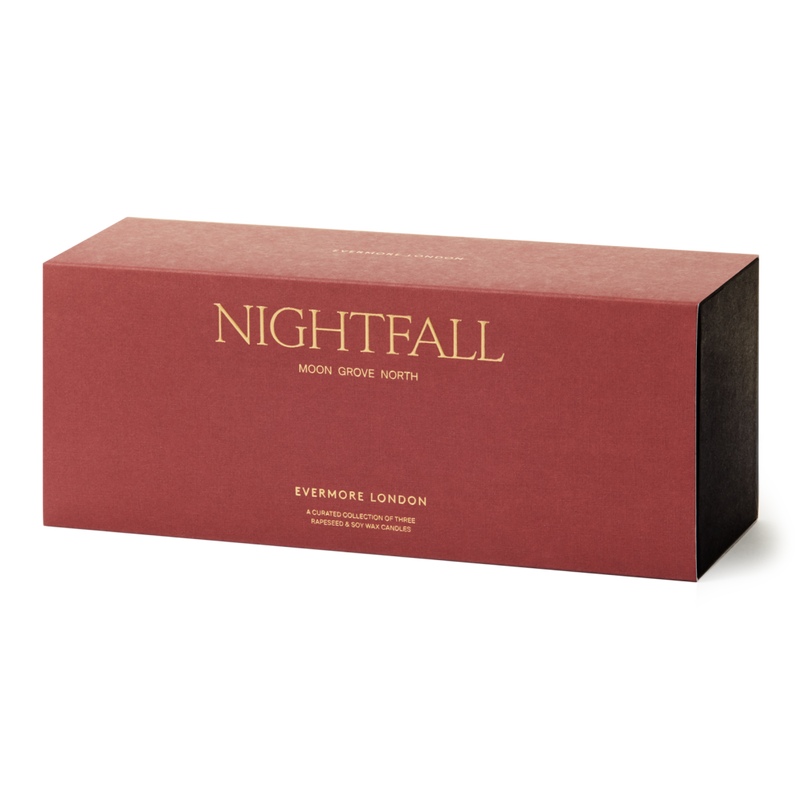A curated collection of three natural rapeseed wax candles. The Nightfall gift set features our three dark, earthy and spice scented candles, inspired by the onset of autumn and dark winter nights.