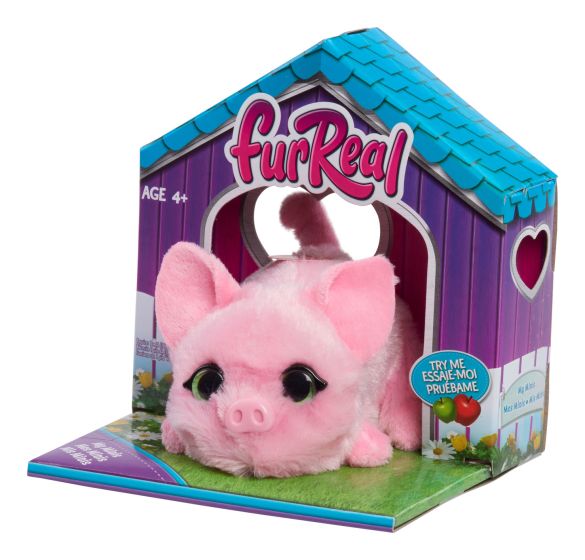 Taking care of a pet has never been cuter than with furReal My Minis Interactive Toys. These adorable pets come in a house-shaped box and are designed for interactive play and sweet cuddles. Pet their backs to watch tails wag and heads bobble up and down – just like real pets. Choose 1 of 3 different animals – all designed with super-soft fabrics: a sweet calico kitty, a happy brown and white pup, or a cute pink piglet. Sized at 5-inches long, these fun kids’ toys fit in coat pockets, backpacks, or even lunch bags to create instantaneous fun during recess, at sleepovers, and at home. For the most pet play fun, collect all 3: Kitty, Puppy, and Piglet (each sold separately). furReal My Minis make sweet additions to any kid’s collection of stuffed animals and other furReal Pets. Requires 1 x AA battery (included). Great for birthdays and everyday celebrations for kids ages 4 years and up.