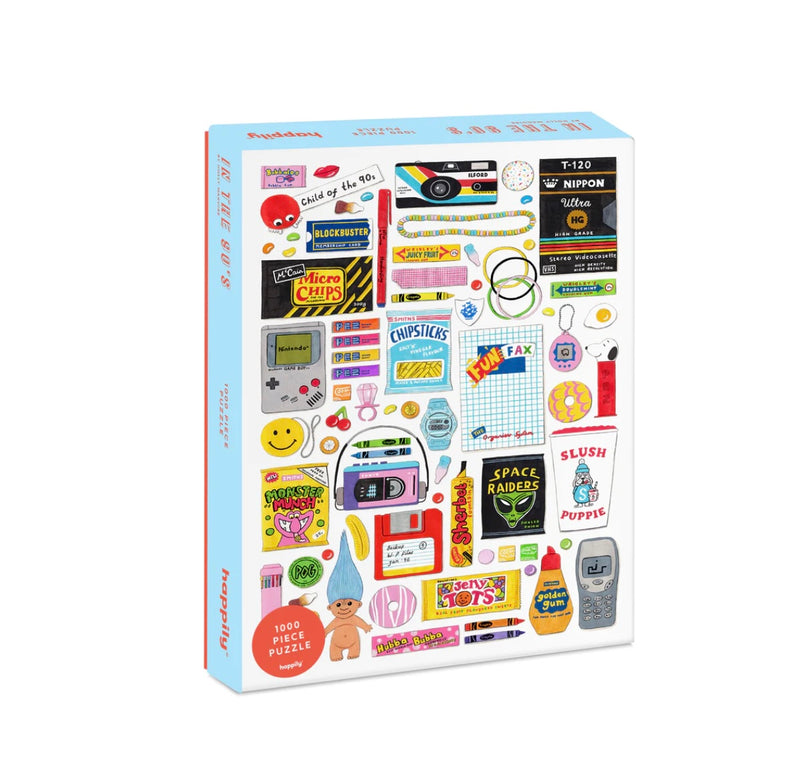 1,000 piece puzzle featuring a fun illustration of 90’s nostalgia by Holly Maguire.  Made in the Netherlands, printed with vegetable-based ink using sustainably sourced high quality FSC paper and 100% recycled board.