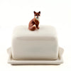 12.5cm Fox butter dish. Handpainted stoneware. Dishwasher proof.