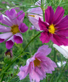 Cosmos are prolific flowering annual plants that are easy to grow simply by sowing seeds in the garden after any danger of frost has passed. They will reach full maturity within two months. The flowers sit atop long slender stems and form a cloud of colour that not only looks attractive throughout the summer but also attracts bees and butterflies and birds to your garden