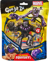 • Vibranium Power Black Panther has joined forces with the Heroes of Goo Jit Zu to become a Super Squishy Hero! Vibranium Power Black Panther is the warrior king of Wakanda. He uses the power of Vibranium to serve and protect him. See him squish and stretch his Goo filled body as he defends his people and his kingdom! This Goo Jit Zu Marvel Hero can stretch, twist and squish his unique Goo filling and move in a way like he never has before! With his extra, super squishy Goo you can squeeze his body and watch his special purple water bead filling bulge out and move around inside of him! Play with your Black Panther Hero in a new GOOEY way and help save the day - with NO mess!