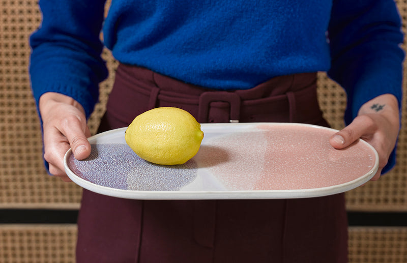 Curved furniture and powdery hues were the highlight of the Eighties. Inspired by those elements, we created a playful mix of organic shaped tableware in blush pinks with touches of blue hues and sunny yellow softness. Crank your cupboard up a notch with these colourful beauties.