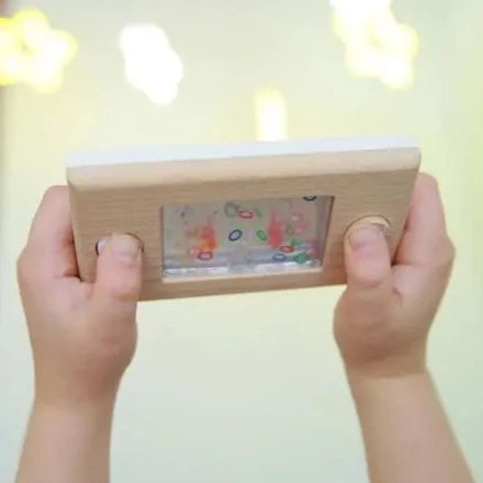 Get your Wakka game on with this sleek wooden version of the old-school retro water game.  Use your two manual controllers (i.e. your thumbs) to press the buttons to try and get all of the rainbow hoops onto the two spikes.