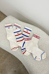 The Girlfriend Socks are the cool crew version of the original bestseller, the classic Boyfriend Socks. These beauties feature a triple contrast stripe at the opening and a shorter classic crew sock length, making them especially flattering for petite ladies.