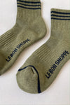 The Girlfriend Socks are the cool crew version of the original bestseller, the classic Boyfriend Socks. These beauties feature a triple contrast stripe at the opening and a shorter classic crew sock length, making them especially flattering for petite ladies.
