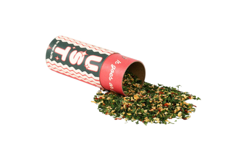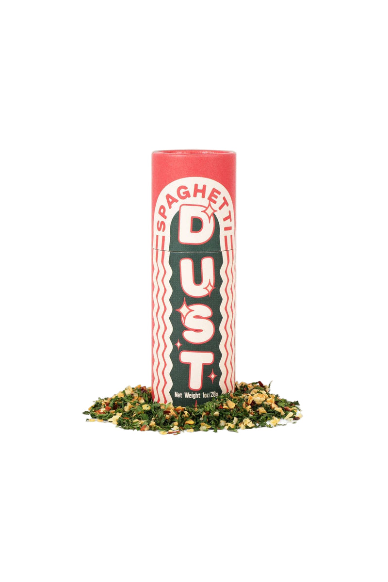 Aglio, Olio e Peperoncino is one of the great dishes of La Cucina Italiana. It is the ultimate last-minute, late-night, just-home-from-a-party-with-nothing-in-the-pantry bare bones recipe. It is garlicky and spicy, heartwarming and soul-satisfying. Spaghetti Dust is a ready-to-go tube of traveling Aglio, Olio e Peperoncino. The idea is that you drain your al dente! pasta and toss it in a bowl with your Spaghetti Dust and ≈ 1/3 cup of high-quality Extra Virgin Olive Oil, then serve immediately at the table or, if it's been a late night, you consume it entirely and directly on the kitchen counter. Goes great on grilled veggies, fish, steak, pizza, and more!
