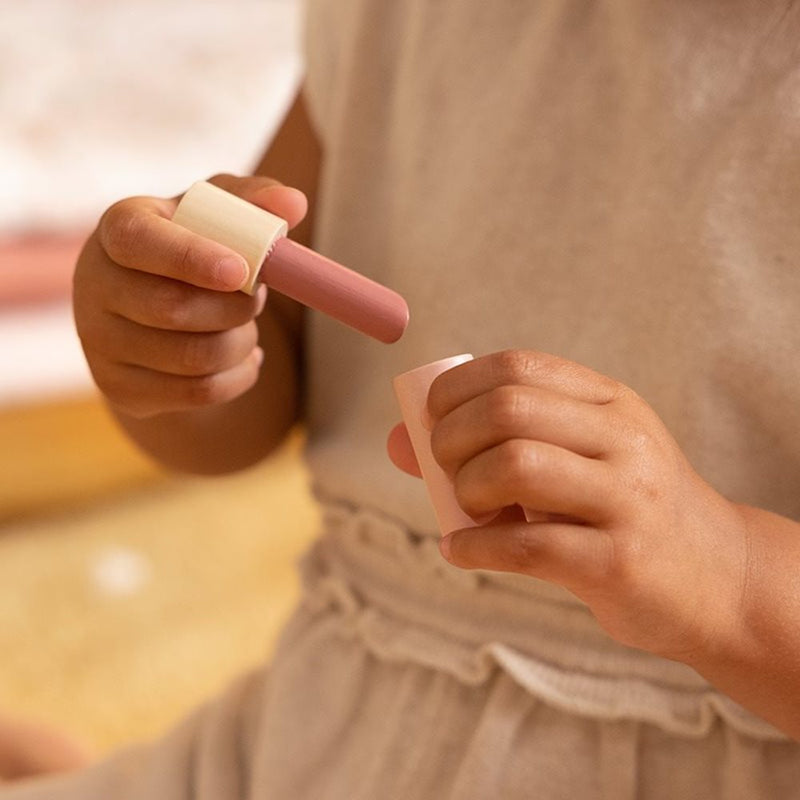 Inspire imaginative play with this blooming beauty case. Enhanced with a vivid floral pattern, it comes with 10 different pretend play wooden beauty products. There’s a hand-held mirror, a perfume bottle and a tube of cream. The set also consists of lipstick, nail polish, face powder, powder puff, eye shadow, mascara and a nail file. This Little Dutch beauty case allows all the fun, but not the mess of real make-up! Designed for ages 3 and up.