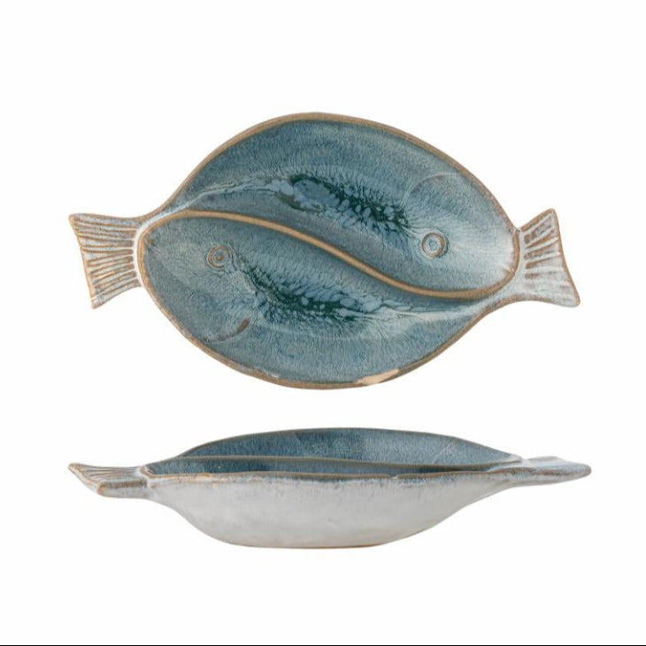 The Mei Serving Plate by Creative Collection is a charming stoneware platter designed with two fish in a beautiful bluish pattern. The platter’s unique shape and glaze bring a touch of maritime atmosphere to the table. Use the platter for serving light dishes or dips, or for storing jewelry and other small items.