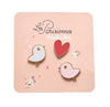 set of 3 pin enamelled enamels and lacquered representing two birds and a heart.