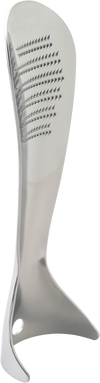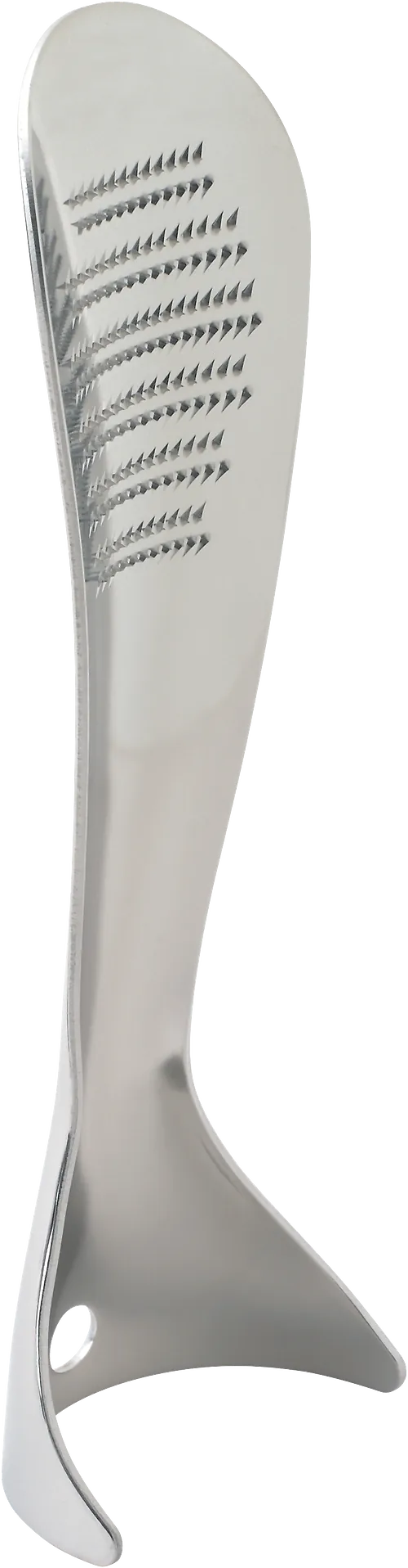 Lovely little Japanese Oroshi grater for wasabi, daikon, ginger, nutmeg etc. It turns food to to a fine paste rather than actually shredding it and is great for a ginger tea. It stands up, hangs up, looks like a shoe horn, and is just over 6" tall. Brilliant.