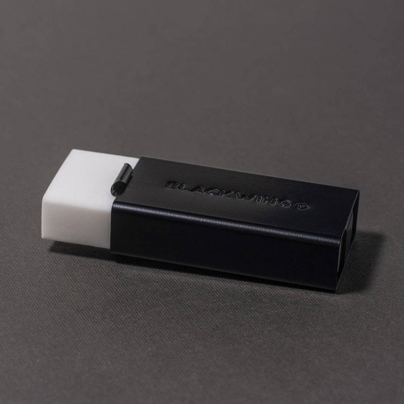 The eraser is made of a special soft material that erases the dark lines of your graphite cleanly and easily. The holder is made of durable aluminum that lets you get a solid grip while erasing. It also includes a jumbo-sized version of the iconic Blackwing clip, so you can extend the eraser as you use it.