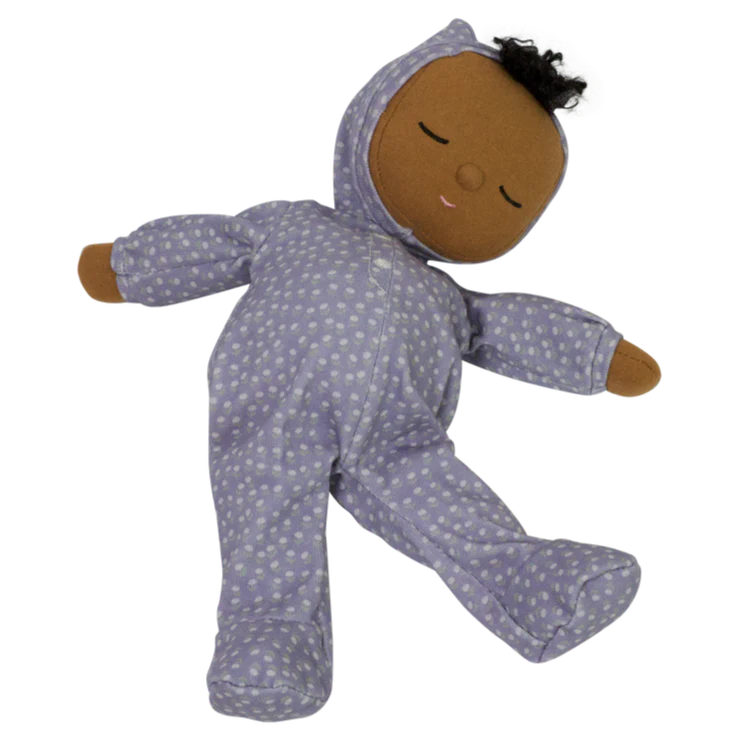Dozy Squeak is posable, made from super soft cotton, and features the sweetest embroidered face with a little tuft of hair. Each Daydream Dozy Dinkum wears a fixed suit with a rainbow right over their heart.