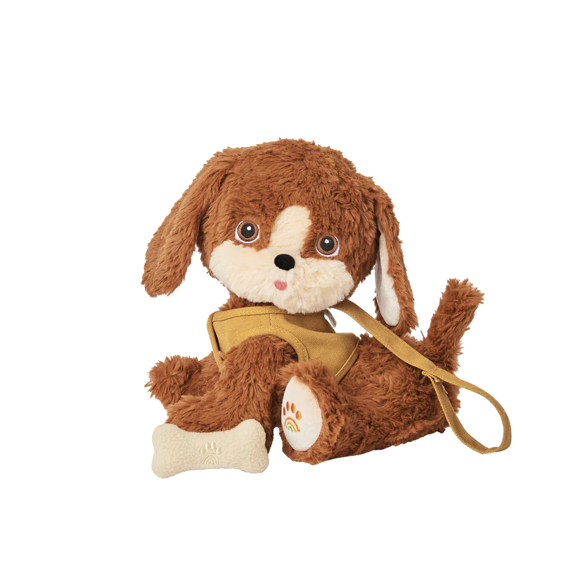 Made from soft plush fabric that is 100% recycled with velvety ears to nuzzle, Buddy is fully poseable and can stand, lay down and even sit! Buddy's head moves and is embroidered with the sweetest doggy face, plus there's a rainbow surprise on one of Buddy's little paws!