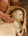 Keep your Dozy Dinkum cozy in the Olli Ella Gumdrop Carry Cot, a soft structured doll carry cot in soft peach cream with a vintage multicoloured jellybean pattern.