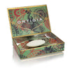 Features a 13x 13cm box, a 25g Fico d'India soap and a glass plate with Ortigia serigraphed printing.