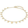 This gold plated chain anklet is dotted with shining mini coins that will catch the light and add a playful touch to everything from evening outfits to casual daytime wear. With an adjustable fastening to allow for the perfect fit, we’ll be pairing it with the matching Sheen Necklace.